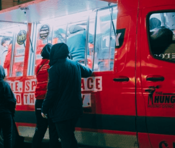 Hope Bus brings the mission home to NYC. NexGen youth volunteer on the bus. Yala provides meals. Studio documents the stories.